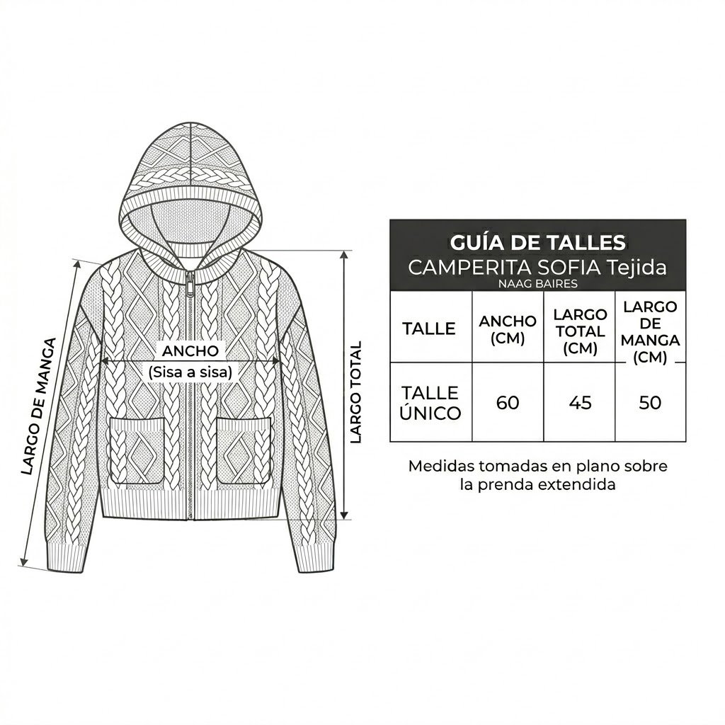 Un básico infaltable para los días de frío. La camperita Sofia está tejida en lana suave con un diseño oversize que brinda comodidad y estilo. Incluye capucha y bolsillos funcionales.